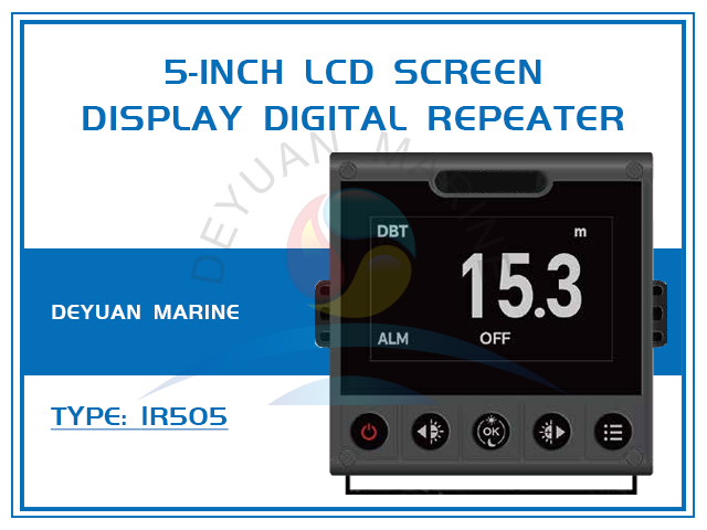 The IR505 is a compact, high-visibility 5-inch digital repeater designed for reliable, real-time display of essential navigation parameters on the vessel's bridge.Receive data in NMEA01 83 format,Can be anemometer repeater / speedlog repeater / sounder repeater / inclinometer repeater/ GPS repeater / gyro repeater,5-inch LCD screen display large value display clear and intuitive data.It serves as a crucial auxiliary display, ensuring key data from primary instruments is visible at multiple watch keeping stations for enhanced situational awareness and operational safety.