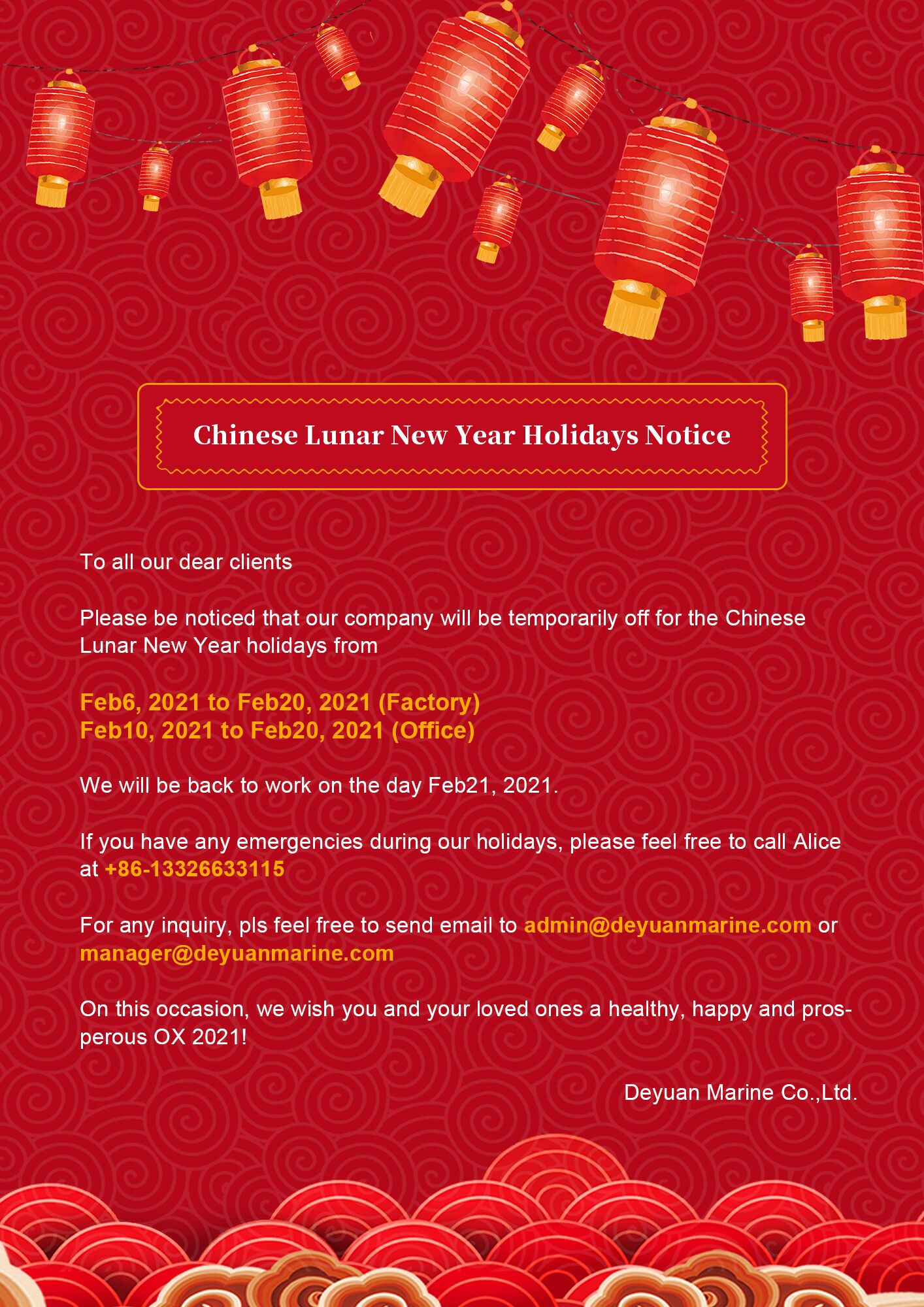 DEYUAN MARINE Chinese Lunar New Year Holidays Notice