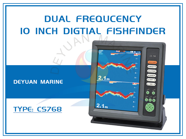 As the third generation of dual frequency fish finder, CS768 support by kinds of advanced technique,like dual core processor, dual frequency detection, multiple power and larger screen. It will help you gather more but less expense. Transmit power is 600- 1000W and the maxim depth is up to 800m. The high resolution 10.4 LCD can display 640*480 pixels color picture.