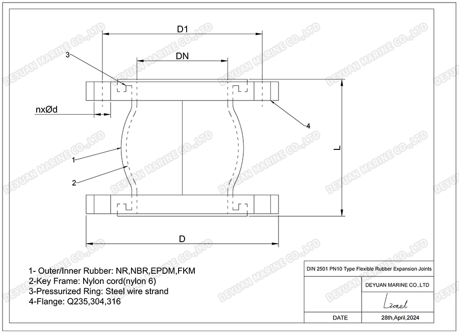 3-Pressurized Ring: Steel wire strand; 4-Flange: Q235,304,316.