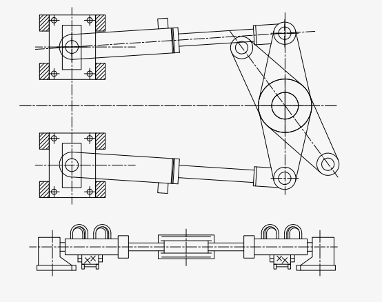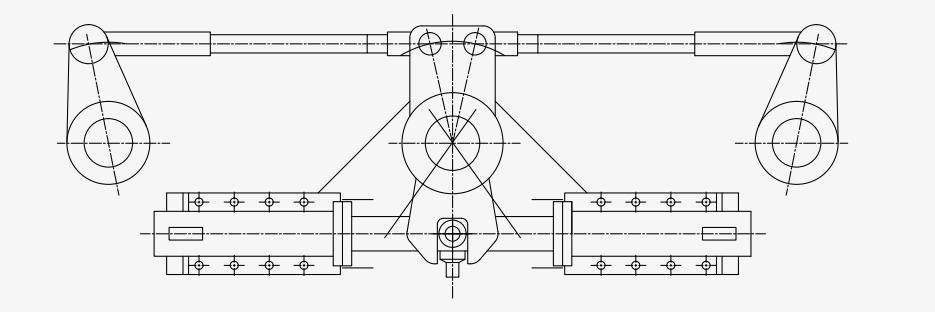 Fork-type push-to-rudder device is the reciprocating motion of the plunger in the cylinder, by tilting tiller output rotation. The rudder torque drives the rudder blade to rotate. The figure shows the steering gear in the twin rudder: