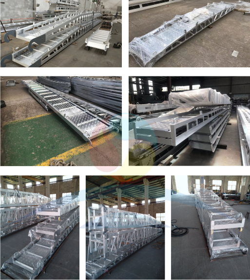 Aluminum gangways are used for personnel to board and disembark from ships after docking at the dock. There are also flat, gangway, and small lightweight aluminum gangways.