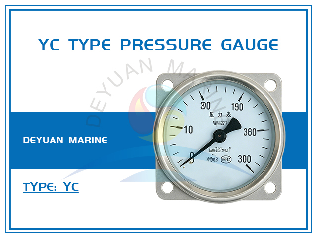 Pressure gauge that use metal spring elements as core is a locale measuring instrument, which accords with general ship technical specification. It can be used to measure pressure of gas and liquid etc. In ship and industrial equipment.